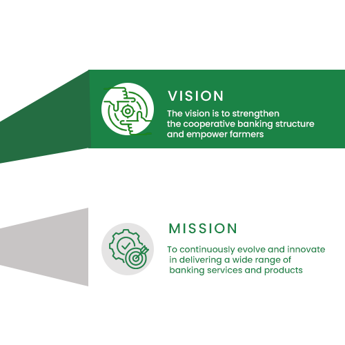To emerge as the best cooperative Bank in the state and also all round economic growth and welfare of farmers in the District.